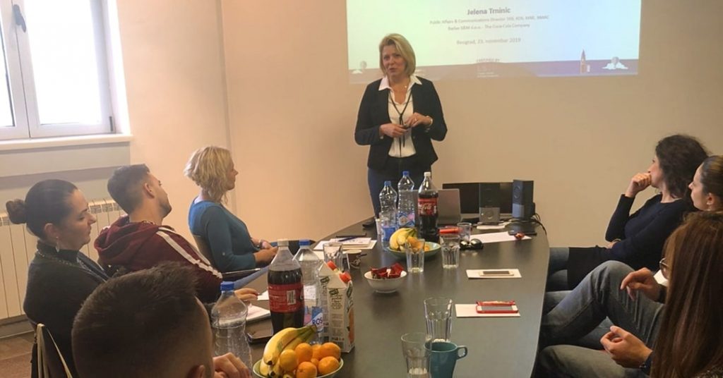 Drugo predavanje koje je održala Jelena Trninić, Public Affairs and Communications menadžer u kompaniji Coca-Cola, približilo nam je javne i regulatorne poslove, ali i njihove krize. Ovo zanimanje zahteva od nas ne samo konstantno raspolaganje relevantnim informacijama, već i strateško inovativno razmišljanje koje treba da bude usklađeno sa okolnostima iz brojnih oblasti u kojima se nalazimo. Čitav kontekst treba da držimo „u malom prstu” kako bismo mogli da budemo ravnopravan sagovornik i uspešno ostvarimo poslovne ciljeve.